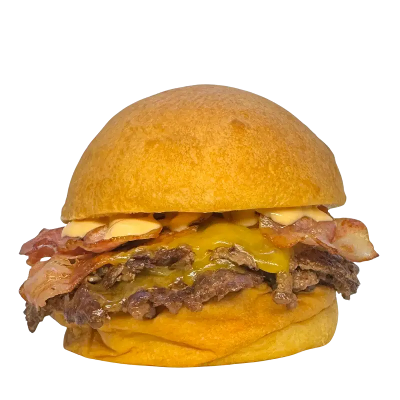 Pan brioche casero / doble carne devaca rubia dry aged / queso cheddar / bacon crujiente / salsa burger casera.